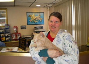 Lorie shares her home with six beautiful cats, all of which were rescued, or had been abandoned at the hospital where she works: Lilly, Midge, Rusty, Dillon, Rhette, and Merlin. Though Lorie loves dogs as well, she feels that bringing a dog into the household would be unfair to Lilly. Lilly lost a leg, part of her tail, and several toes after being mauled by a dog when she was a kitten. She has lived with Lorie since that time and is currently happy, healthy, and not at all bothered by the fact that she has only three legs. As a result, as long as Lilly is with Lorie, her family will remain entirely feline.